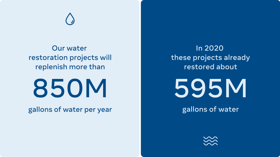 “We’ve already been taking a similar approach with water, and have invested in water restoration projects that will replenish more than 850 million gallons of water per year. In regions experiencing high levels of water stress, these projects have already restored about 595 million gallons of water in 2020. These water restoration projects offer significant benefits both to local communities and their surrounding ecosystems, particularly in water stressed regions.” Facebook says on their website.