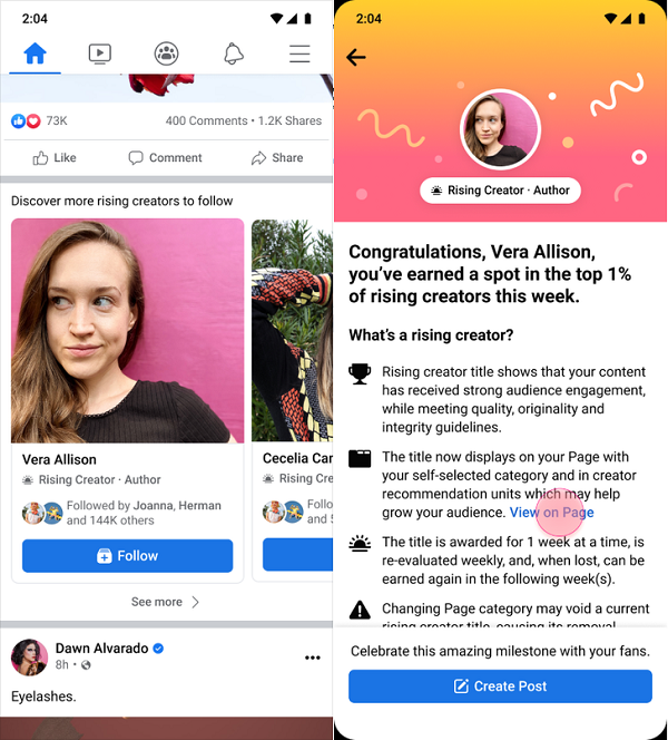 To help people find new voices Meta is also experimenting with new Rising Creator alerts.