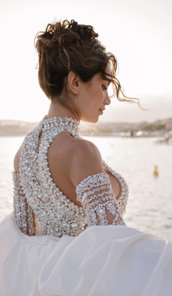One of our recent favorites, is the gorgeous Kusha basking in the Cannes sun in custom Rimzim Dadu couture featuring their signature steel wire textile.
