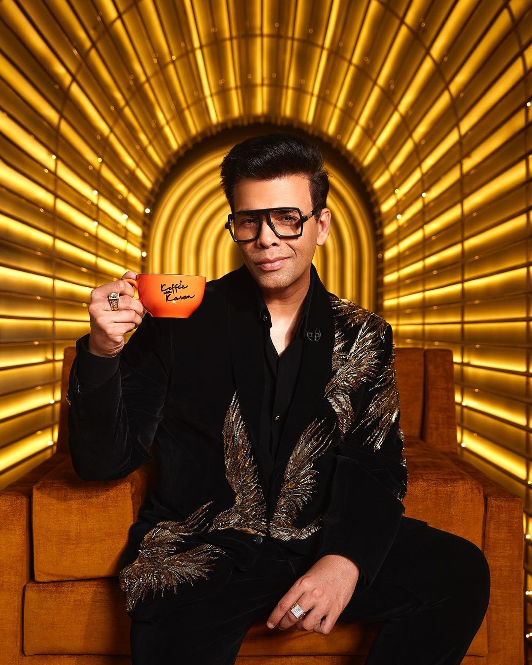 Karan Johar teases Koffee with Karan Season 8 with a new black & white ‘manifestation couch’ featuring a "spill the beans" theme.